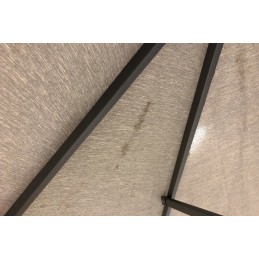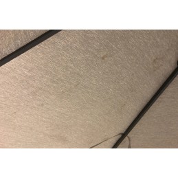 Parasol posiada plamy na poszyciu oraz krzywy stelaż.