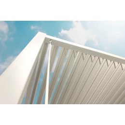 Górne listwy dachu są regulowane, co pozwala na wpuszczanie takiej ilości światła słonecznego, jaka jest dla Ciebie odpowiednia. Podczas opadów deszczu woda odprowadzana jest poprzez nogi konstrukcji. Produkt jest wodoszczelny, charakteryzuje się wysoką stabilnością na wietrze.